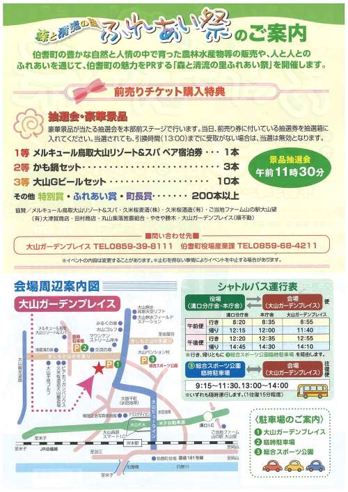 【前売りチケット(抽選券付)取扱場(chǎng)所】大山ガーデンプレイス?ご當(dāng)?shù)廿榨々`ム山の駅大山望?