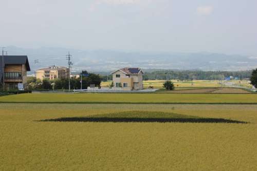 古代米を使って見事に大山を描いてあります。 9月30日には稲刈りを予定しているとの事ですが 古代米の生育が少し遅れているので古代米の大山はもう少し 眺める事が出來るとの事。
