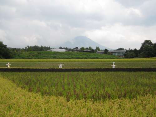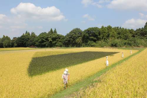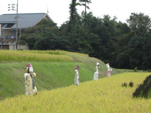 「案山子四人衆(zhòng)?」が古代米の大山を守っています。