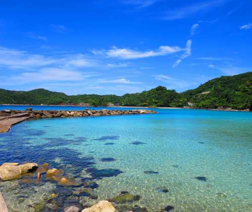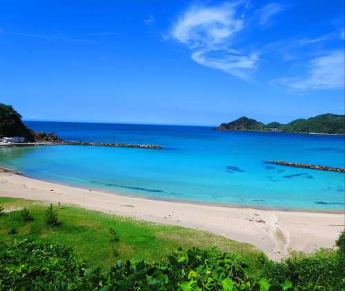 7月の天気の良い日にお隣島根県にある笹子海水浴場に行ってきました。 大山リゾートの近くの皆生(かいけ)に海水浴場はありますが少し足を伸ばせばこんなにもきれいな海水浴場があります。 初めて見た人は日本の海ではないみたい!!ましてこれが日本海なんて!!と 山陰の海といえばきっと「どんよりグレーな海」を想像されていたのでしょ???。 こじんまりとした海水浴場で穴場的な海水浴場ですが今回特別にご紹介します。