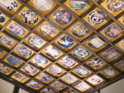こちらがゲゲゲの鬼太郎でおなじみの、水木しげるさんによる妖怪絵図が描かれた天井畫です!