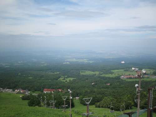 別荘地から約7.5km(車で約15分)大山の山麓に広がるこの桝水高原は、冬期はスキー場として賑わいます。 この時期にはこのスキー場のリフトが観光用に運行され、爽やかな風を感じながら、大自然を満喫することができる、おすすめスポットになります それでは早速乗ってみたいと思います。