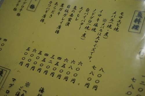 早速メニューを広げると、ありました!巖ガキ500円。リーズナブルです。その他、魚介類を焼き、煮、刺身など豊富にあります。