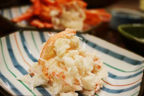 続いて、ベニズワイガニ。境港は水揚げが日本一です。秋から春にかけて水揚げされます。しっとりとしたジューシーな身を頬張ると濃厚な旨みが広がります。