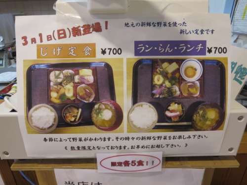 ②どちらも地元の新鮮野菜を使った定食で一日限定各5食。