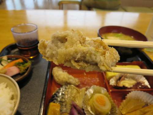 ④コロッケの中身は銀杏入りの里芋でホクホクしておいしい!