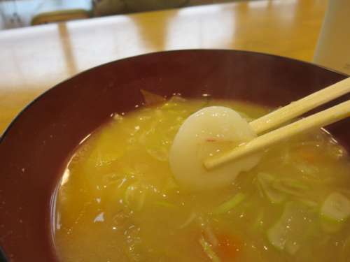 ⑦具沢山のお味噌汁にはかわいいお餅が2つ入ってました。
