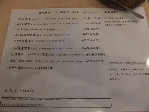 メニューは、牛タン定食?豚タン定食の他に、さんま定食?メンチかつ定食なども