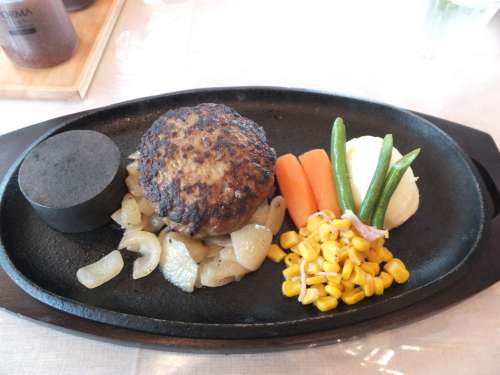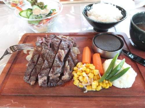 今回はランチに伺い、「熟成牛ロースステーキ」「I.G特製ハンバーグ」 「大山ハーブチキン モモステーキ」をいただきました。