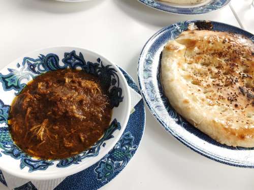 チキンカレーとナン チキンカレーは、スパイスのいい香りがし、チキンがほろほろに煮込まていて とても美味しいです。オリーブオイルを使用しているためか しつこさがなく、さっぱりと頂けました。 辛さは控えめですが、希望すれば青唐辛子で辛さを増してくれます。 ナンは、一般的な楕円形ではなく丸形で、外はサクサク、中はふっくらです。 ナンだけでも美味しくいただけ、何枚でも食べれそうです。