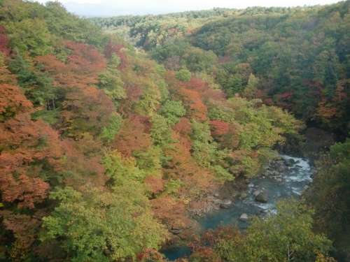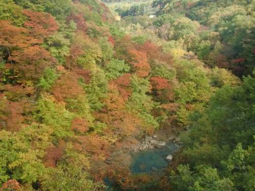 私は橋の上から??紅葉が始まっている絶景を見ながら??『あ~何て 幸せなんだ~いろんな悩みや??ストレスが全て無くなる~すべてを忘れさせてくれるなぁ~この景色は!』と“ひとりごと”をつぶやきます。しかし???そう言えば??私に悩みなど元々なかったし~また??ストレスを感じる事も特になかったし~しいて言えば??最近メタボ(食べ過ぎ?)に多少悩んでいるクライマックスシリーズ??(おやじギャグ?)でした。