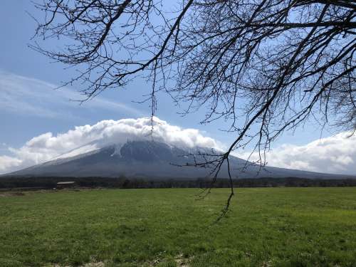 満開になると桜に囲まれた巖手山を見ることが出來ます