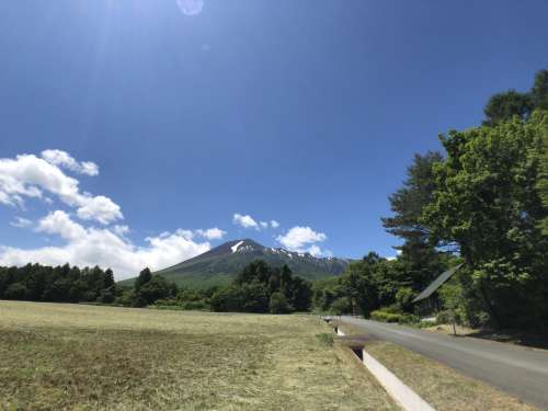 D街區(qū)東側(cè)の牧草地より撮影した巖手山です。