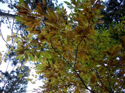 西側境界沿いに目隠しや風除けになる杉の木が並ぶ4-39號地 その杉の內側に小さなクリ林があります。 まだほとんど実も付けない目立たないクリ林ですが、 今は後ろの杉を背景に黃色がかった一角を形成中。 目の高さよりほんの少し高い位置に見えるこの紅葉を見ると、 改めてそこにクリ林があったことを思い出させてくれます。