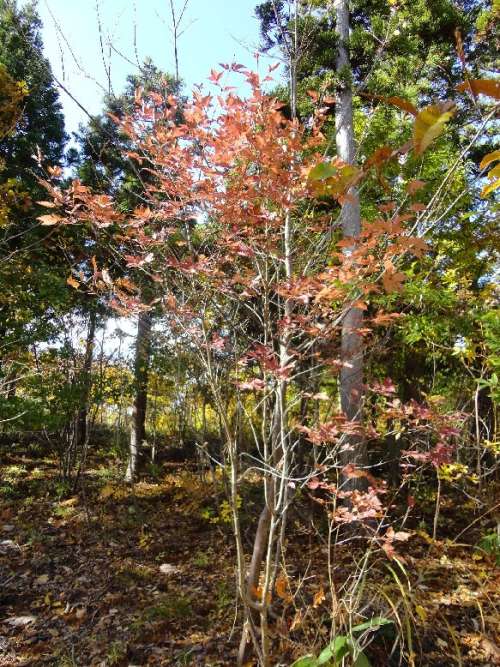 また北側境界付近に赤く色付くタモの木らしき木もあります。