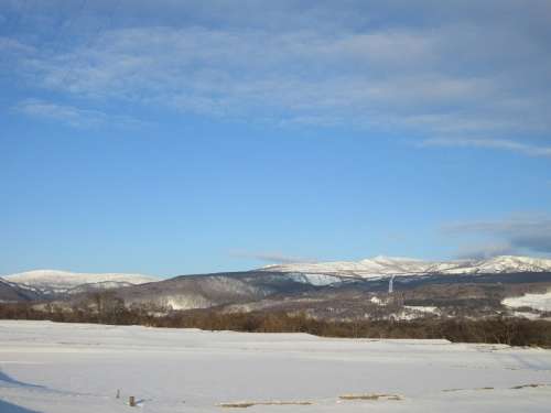 ■巖手山と牧草地(分譲地より約1km〜約2.1km) 朝日が昇り、雪面が一面きれいです