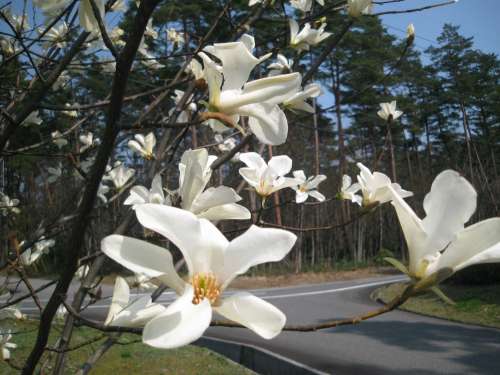 コブシは葉が生える前に花だけ咲かすため、白い大きな花が特に強調されますね!