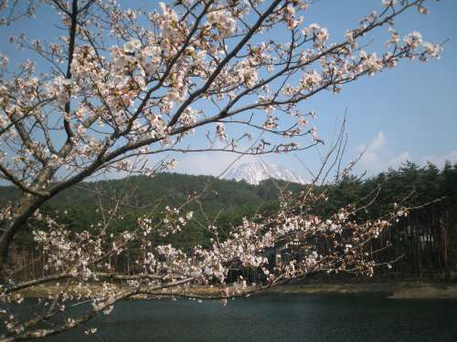 大成池の周辺以外にも敷地內ではたくさんの山桜が花を咲かせており、