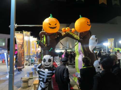 駅前會場広場では「お化けに仮裝」された人が仮裝コンテストに參加されていました。また、駅舎內では「かぼちゃのお化け」で裝飾されていました。