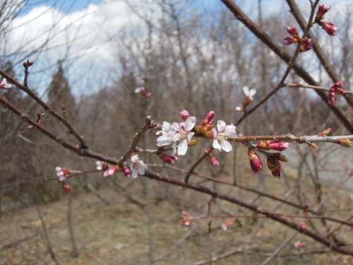 このところの暖かい陽気に誘われて豬苗代ヒルズのウェルカムオフィス前の山桜が開花しました。