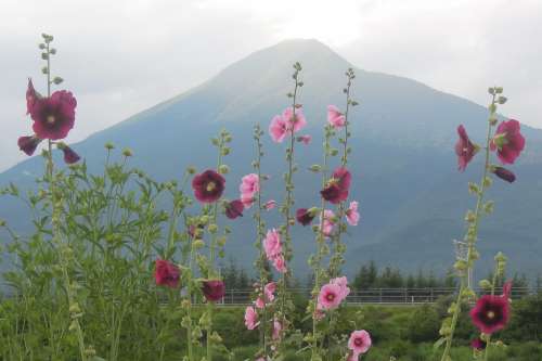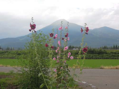 會津方面では、タチアオイと呼ばれる花がきれいに咲いておりますが、寫真のように一番上の花が咲くころに梅雨があけると言われております。