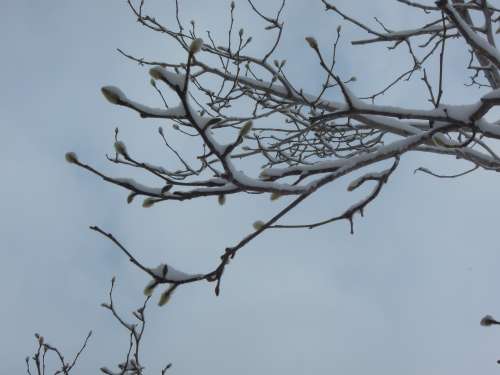 そのような中、雪をかぶりながらも春に向けてぷっくりと芽吹きかけているコブシの木を見ると活力をもらえる様な気持ちになります。