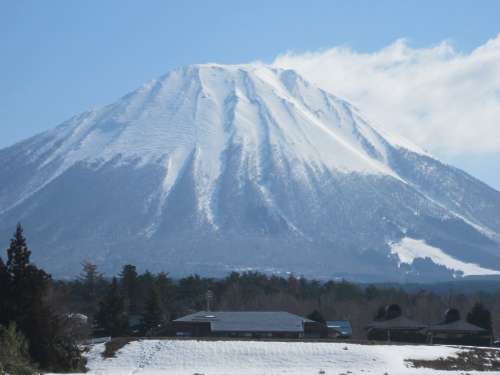 真っ青な青空の下、別名伯耆富士の大山の雄姿。 現(xiàn)地より約1㎞。平成26年2月23日撮影。 現(xiàn)地より約3㎞。平成26年2月24日撮影。