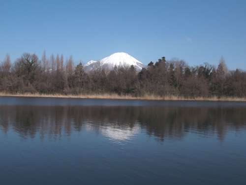 植田正治寫真美術館近くの逆さ大山の名所「福岡堤」。 この日は少し風がありキレイな逆さ大山とは行きませんでしたが…。
