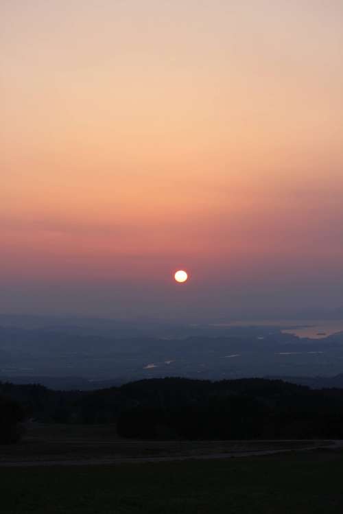 牧歌的な風(fēng)景と夕日色に染まる中海。
