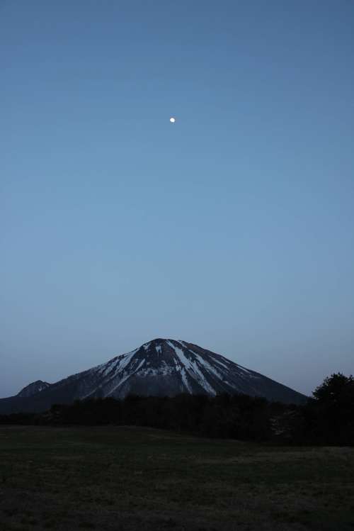 帰ろうと大山を振り返るとちょうど月が大山の真上に。