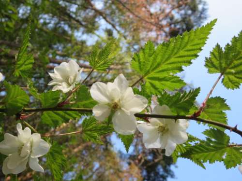 5月末に食べごろを迎えるモミジイチゴ。4月は花の季節です。