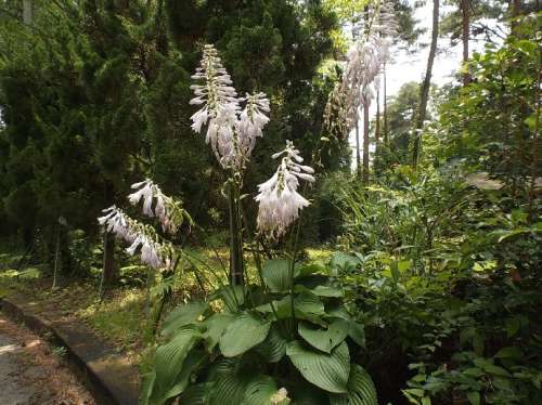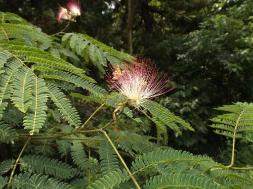夏の花。ネムノキの花(上)とギボウシの花(下)。