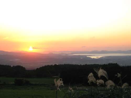 弓ヶ浜と島根半島 中海(なかうみ)とススキの穂