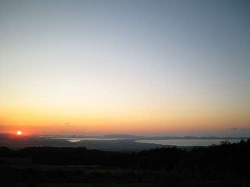 「秋は、夕暮。夕日のさして、山の端(は)いと近うなりたるに???」 日が山際に近くなるにつれ、周辺が真っ赤に染まる様子は不思議と心が落ち著きますね。 今の時期は6時~6時半頃にかけて日の入りを見ることができます。