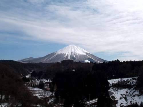 近くの小林大橋からの大山の眺望。まさに『伯耆富士』の容姿。