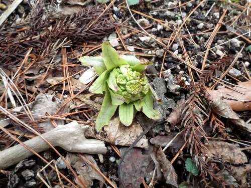 分譲地內(nèi)では雪融けした地面からフキノトウの姿。