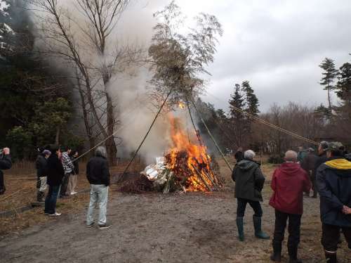 毎年恒例となっている 地元や周辺施設(shè)、大山リゾートのオーナー様が參加する 「とんどさん」が大山リゾート隣接の交流の森公園で開催されました。 「とんどさん」とは新年に行われる火祭行事の事で 地域によっては「とんど焼き」「左議長(zhǎng)」などと呼ばれる 正月飾りなどを焼く行事で一年の無病息災(zāi)を祈って行われています。 今年は積雪がない狀況での「とんどさん」。 私も大山リゾートに赴任してきて初めての経験です。 大山ガーデンプレイスの支配人の挨拶の後、著火です。 今年は年末から天候が良かった為すぐに大きな炎が立ち上がります。 地元の方が用意していただいたぜんざいなどの料理も振舞われ 街中ではあまり見かけなくなった伝統(tǒng)行事を楽しみました。