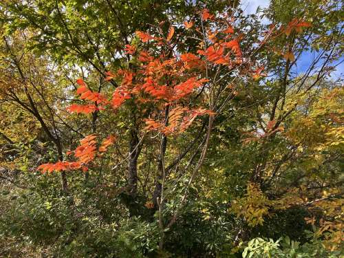 ヤマモミジ、ウリハダカエデ、ヤマウルシ、クロモジなど
