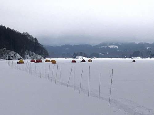 早くも氷の上に多くのテントが設(shè)営されていました。