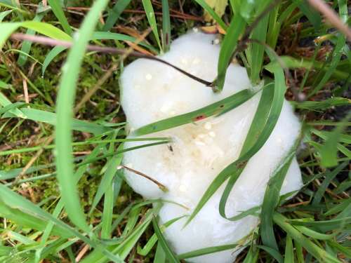 雨が続くこの時期に見られる モリアオガエルの卵を見つけました。