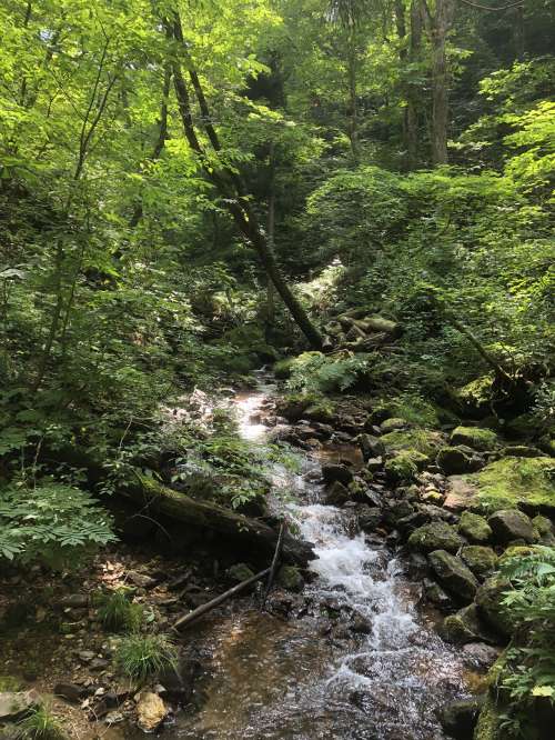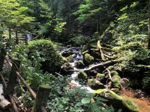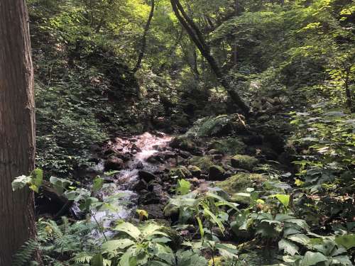 帰りは滝から流れる川に沿ってしばらく歩きます。
