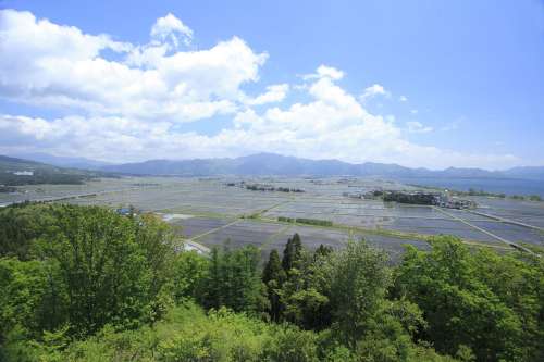 ■ヒルトップからの豬苗代町方面???鏡のような畑の水面が