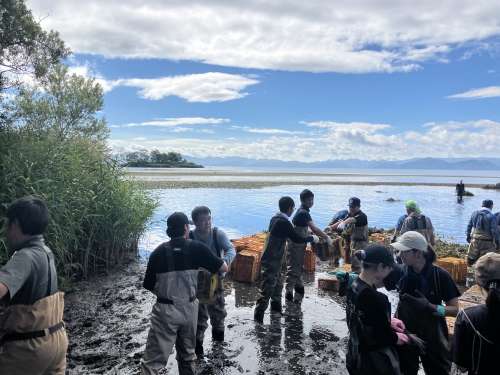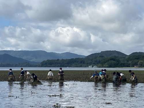 豬苗代湖でヒシ狩りボランティアに參加しました