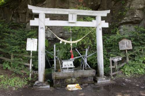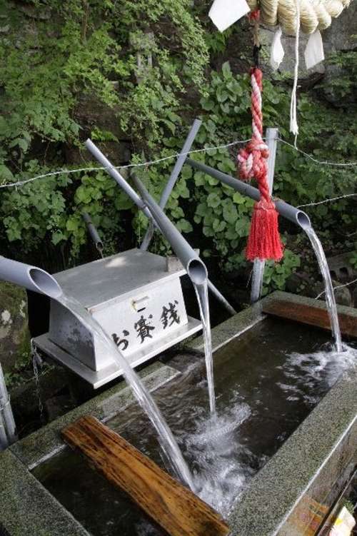 ただし、湧き出し口が道路のすぐ側のため、道路に車を停めて汲んでいる方も見られるそうですが、大型の観光バスやら行楽のマイカーがひっきりなしに行き交いますので、大変危険です。どうしても水を汲みたい場合は、頂上手前のパーキング(無料)をご利用のうえ、歩いていくことをお薦めします。その場合でも、車にはくれぐれもご注意いただきたいと思います。