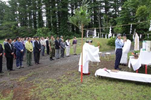巖手山の登山ル-トは、八幡平市側に4-ス、滝沢村側に1コース、雫石町側に2-ス、併せて7コ-スあります。今年も3市町村合同の山開きとなり、主要コ-スとなっている焼走り登山口(午前6時〜)、柳沢?馬返し登山口(午前6時〜)、網張登山口(午前5時20分〜)で、今シ-ズンの安全を願っての祈願祭が行われました。