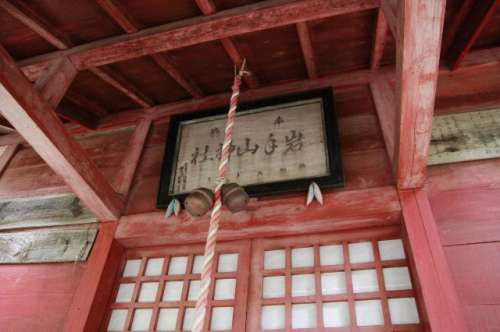 ところで、この登山口の手前左側を300メートルほど降りると、上坊神社があります。真っ赤な鳥居をくぐった左手にこれも赤い社があります。正面の額には“巖手山神社"と書かれていました。ここが、巖手山神社のルーツ?なんとも、神秘的な雰囲気が漂っていました。