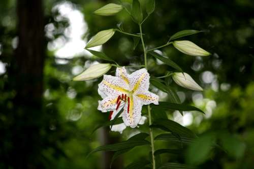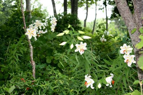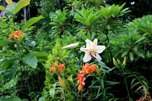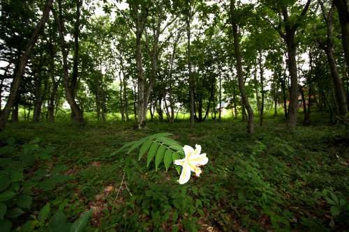 「カンゾウと咲くヤマユリ」       「林の中で咲く一輪のヤマユリ」