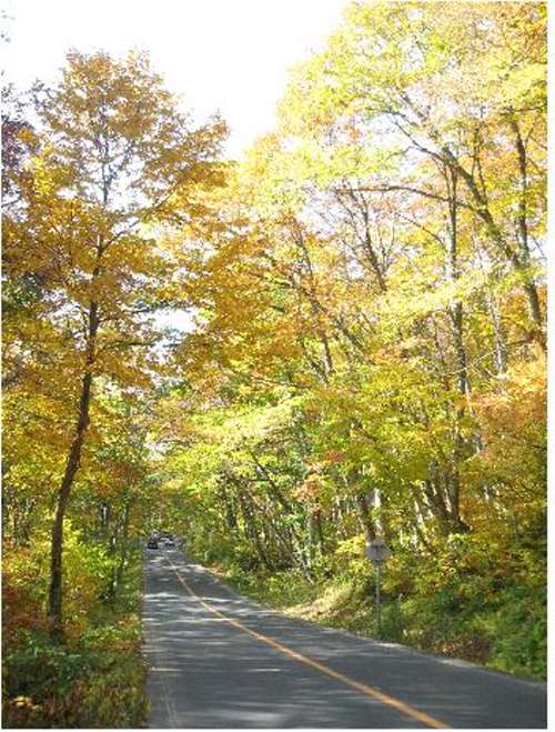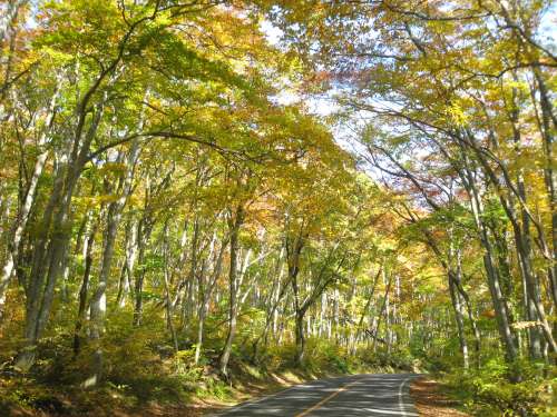 特に「二の沢」から「三の沢」まではブナの木が道路の両脇からしっかりと枝をのばしているため、紅葉のトンネルが綺麗につくられています。