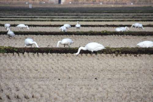 日中の農道をドライブすると、田んぼに群がる白い団體さんを良く見かけます。ハクチョウが家族単位で餌を探しているところです。田んぼの落ち穂を食べているそうです。毎日場所を変えるので、どこの田でハクチョウが見られるかは分かりません。