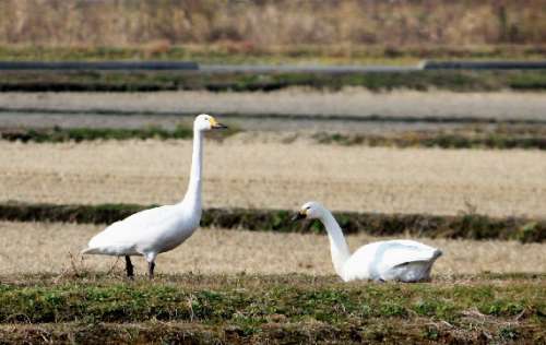 ※豬苗代で見られるハクチョウのほとんどがコハクチョウです。